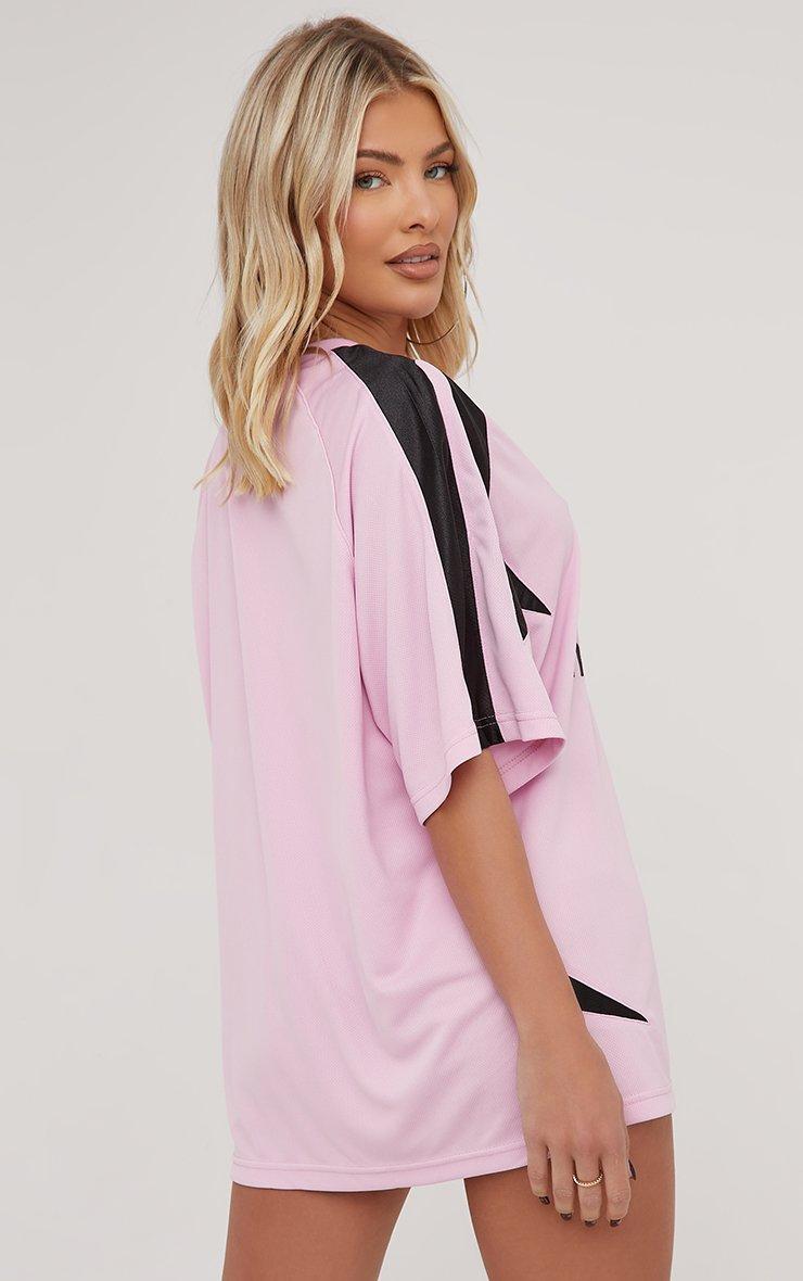 Oversized Contrast Detail Football Jersey Top In Pink