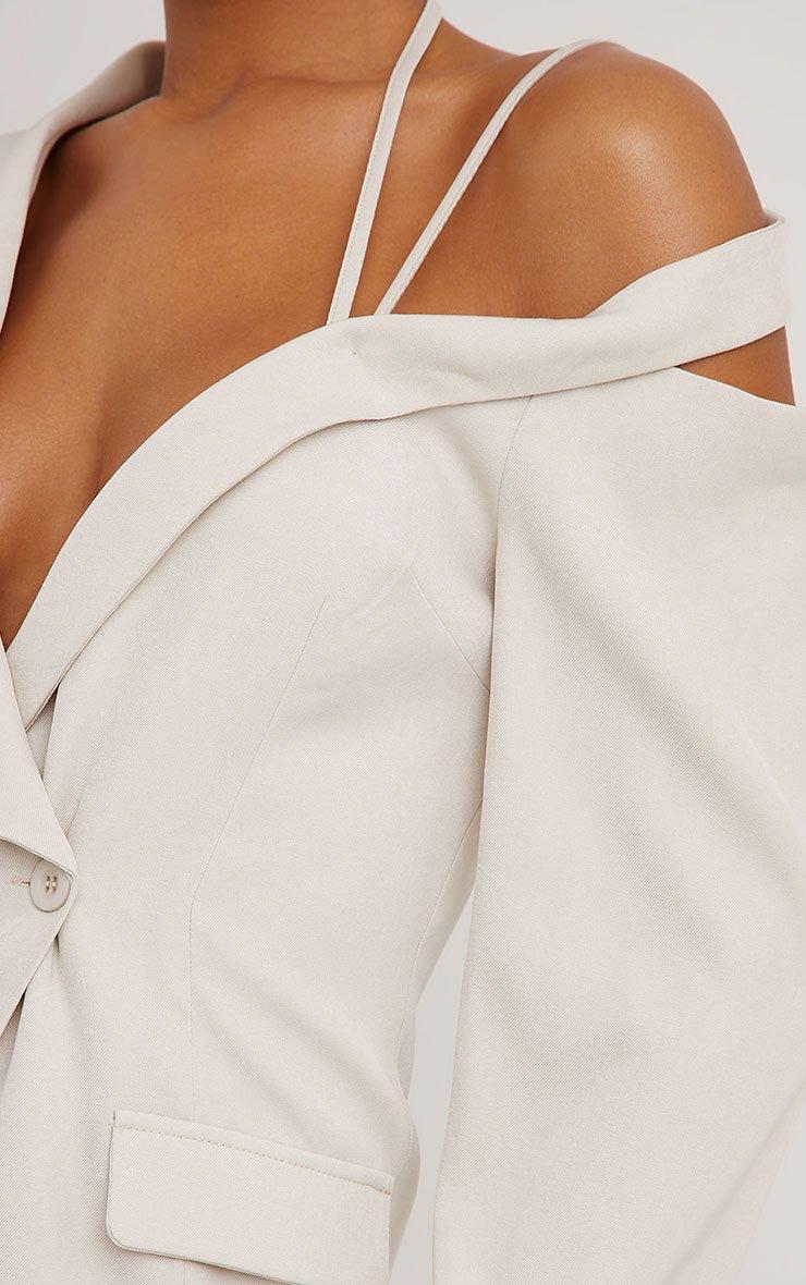 Plunge Halterneck Tailored Mini Dress In Stone