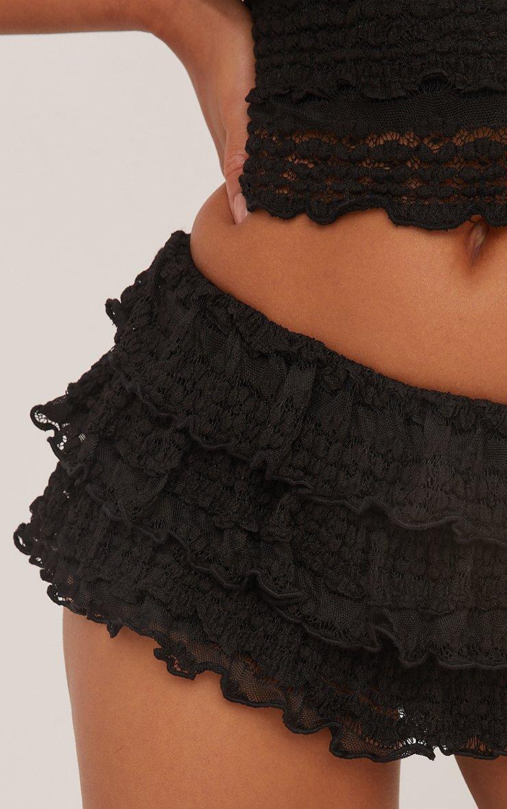 Low Rise Frilly Hot Pant Shorts In Black Lace