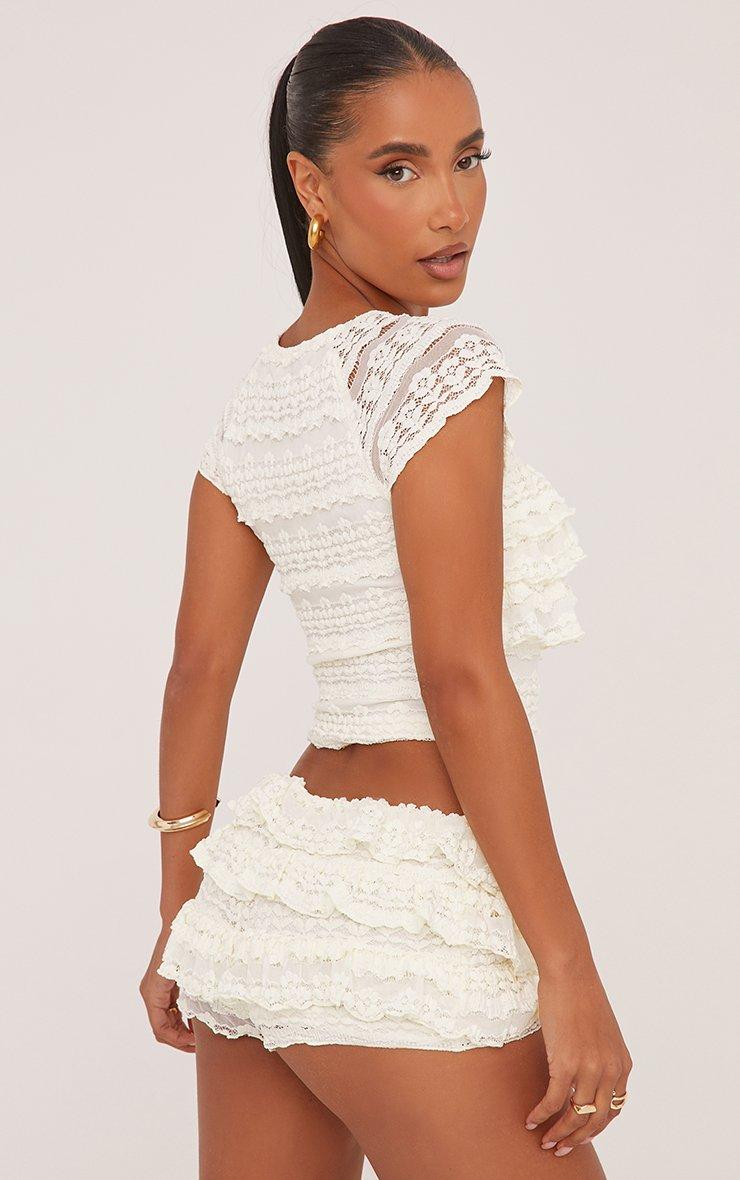 Low Rise All Over Frill Detail Booty Shorts In Cream Texture