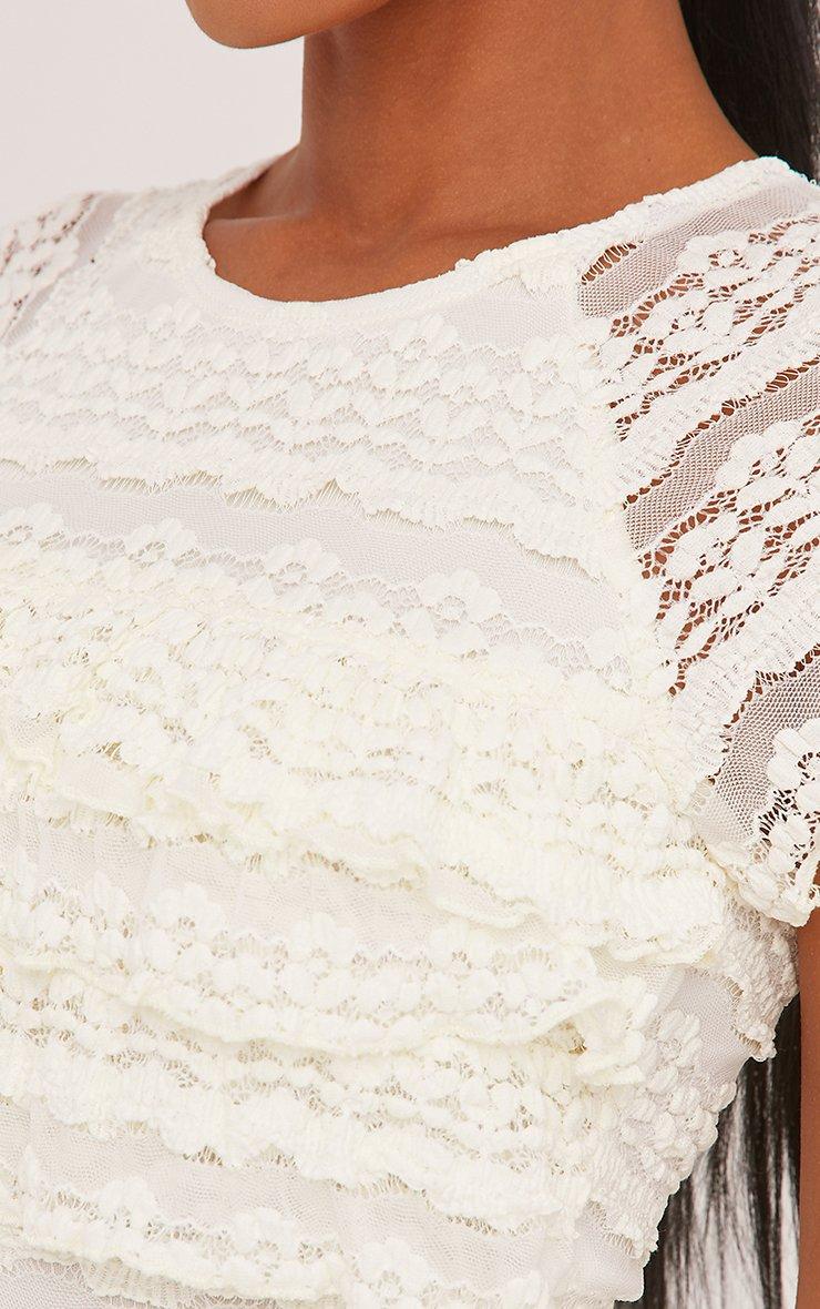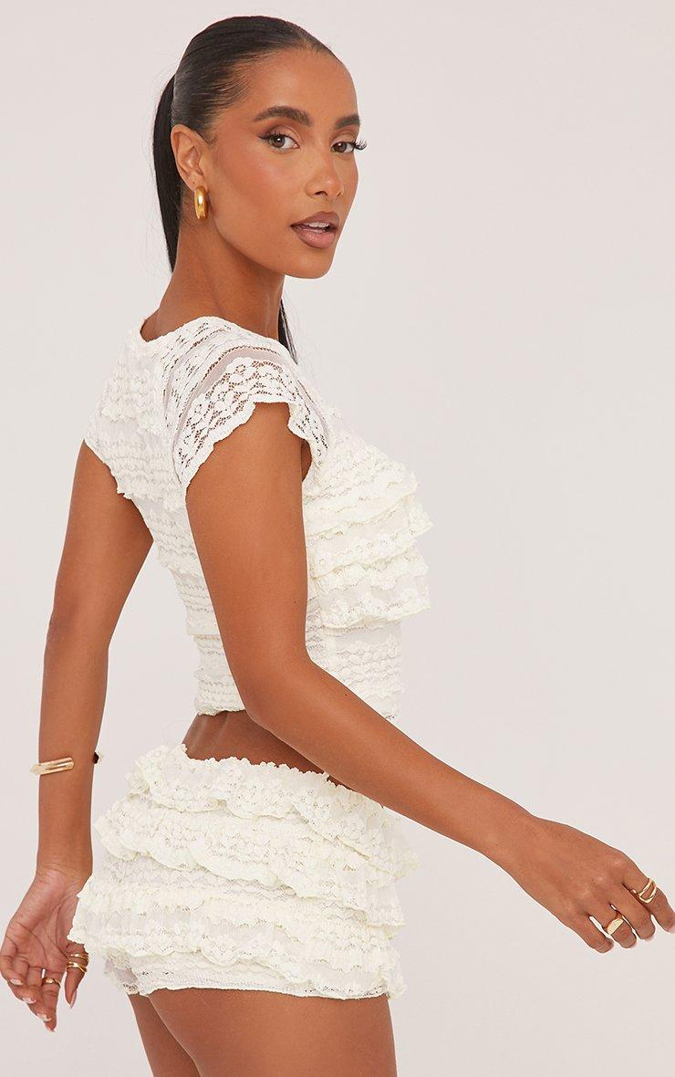 Short Sleeve Frill Bust Detail T-Shirt In Cream