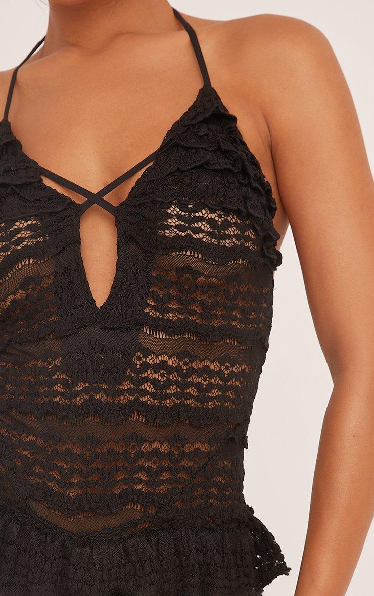 halterneck cross strap all over frill detail playsuit in black texture