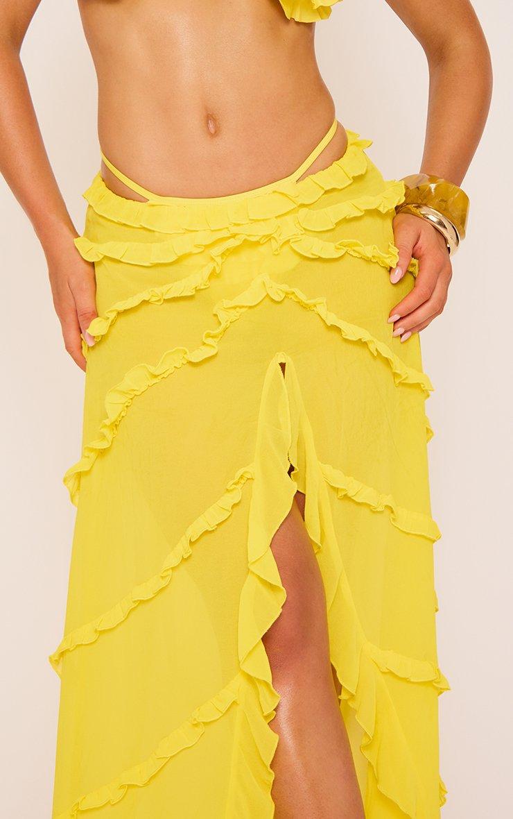 low waist frill detail maxi beach skirt in yellow mesh