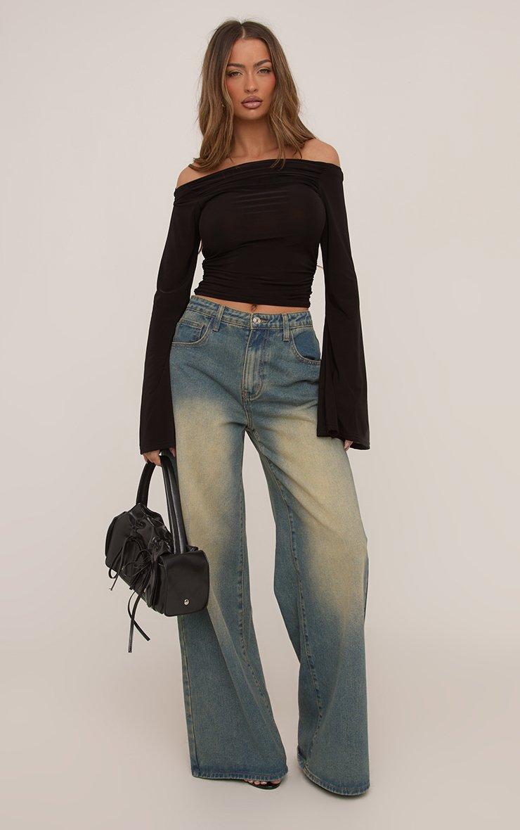Short Sleeve Cinched Waist Fitted T-Shirt In Black