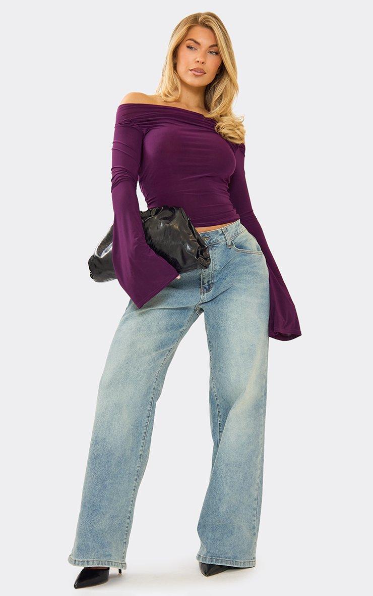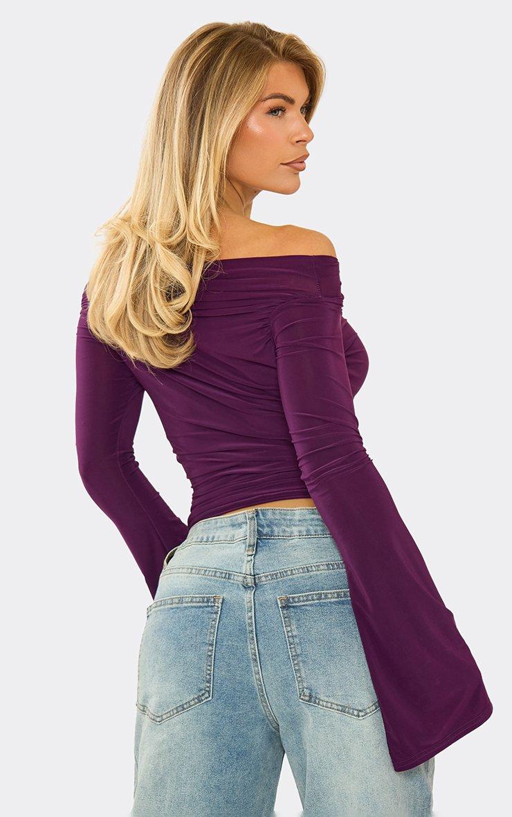 Bardot Flared Sleeve Top In Black Slinky