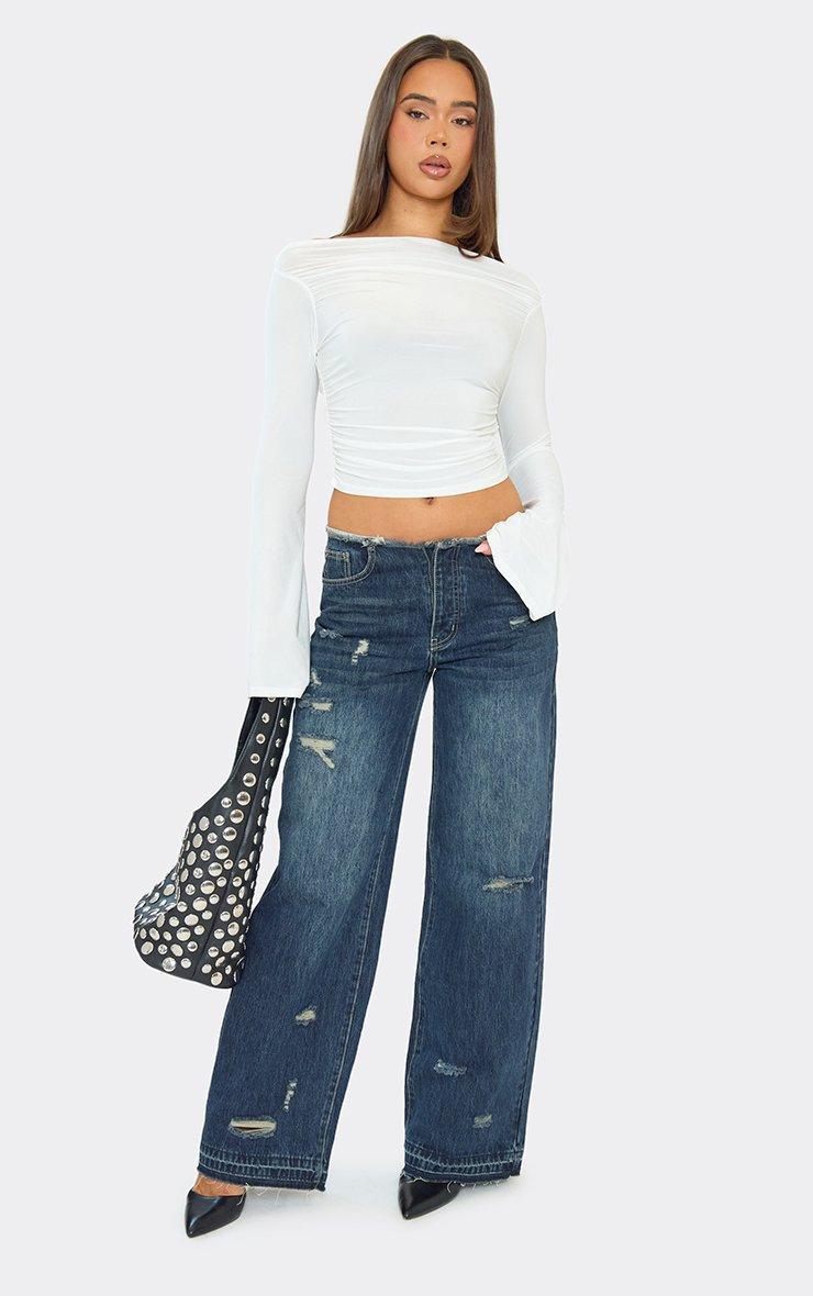 Bardot Flared Sleeve Top In White Slinky