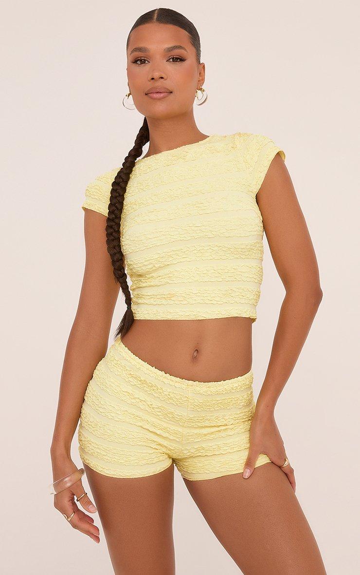 High Waist Frill Trim Detail Shorts In Lemon Lace