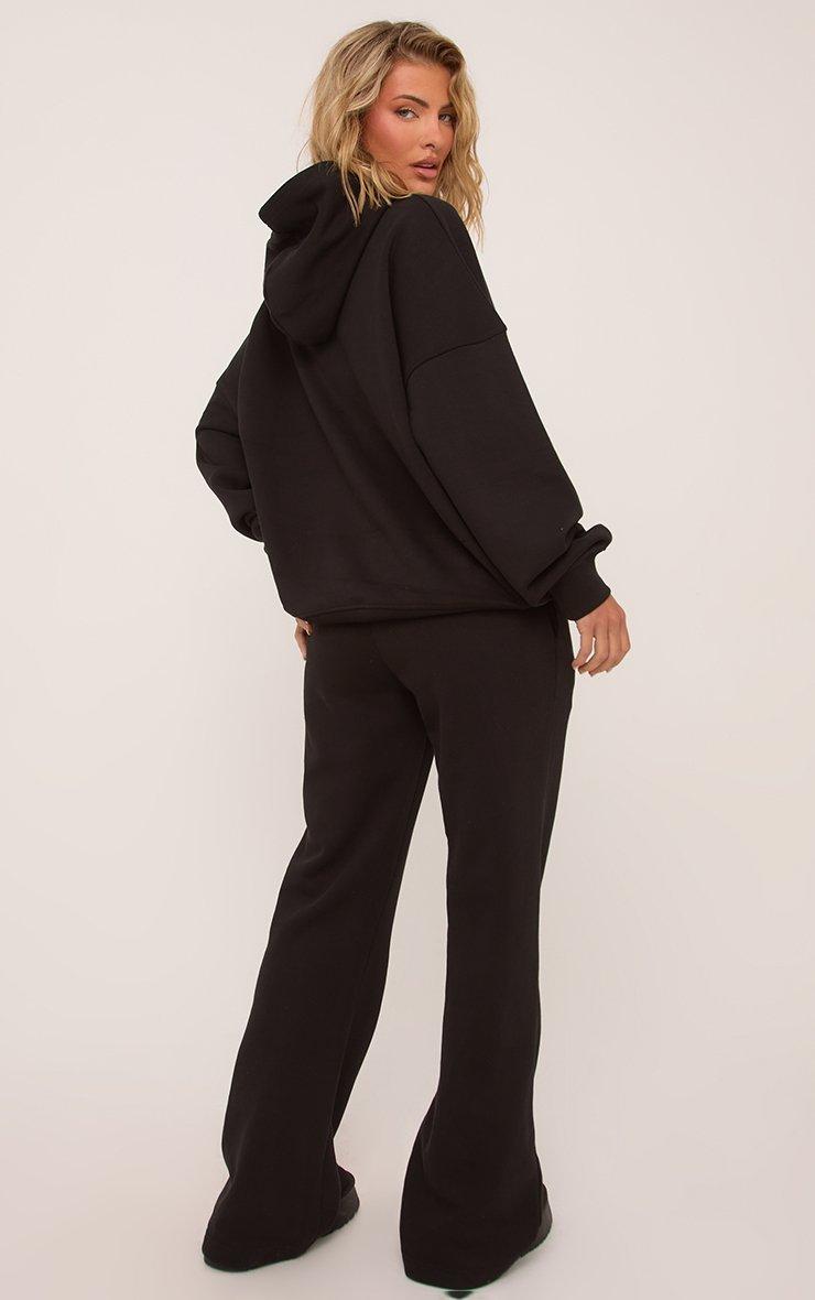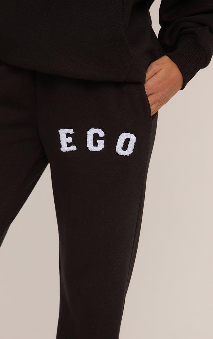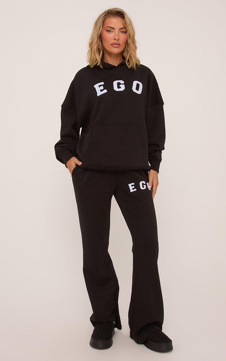 High Waist Ego Graphic Slogan Flared Leg Joggers In Black