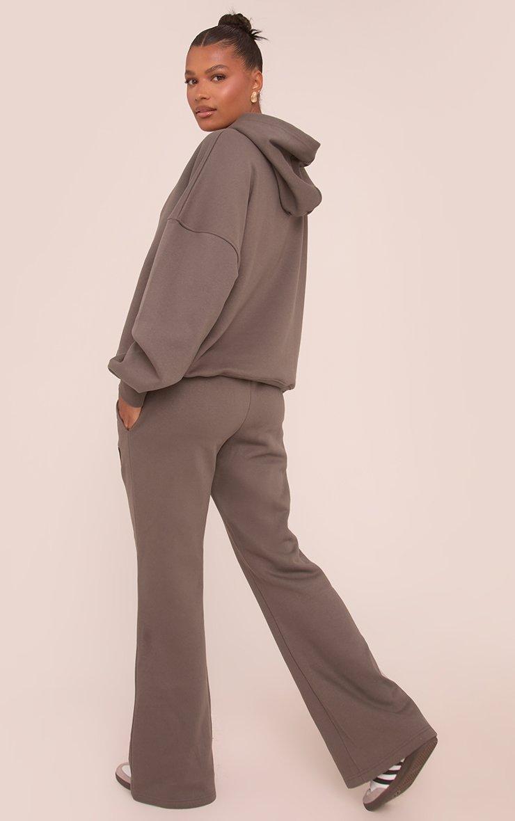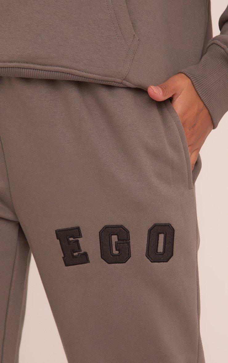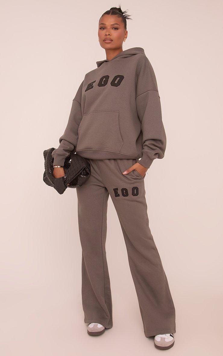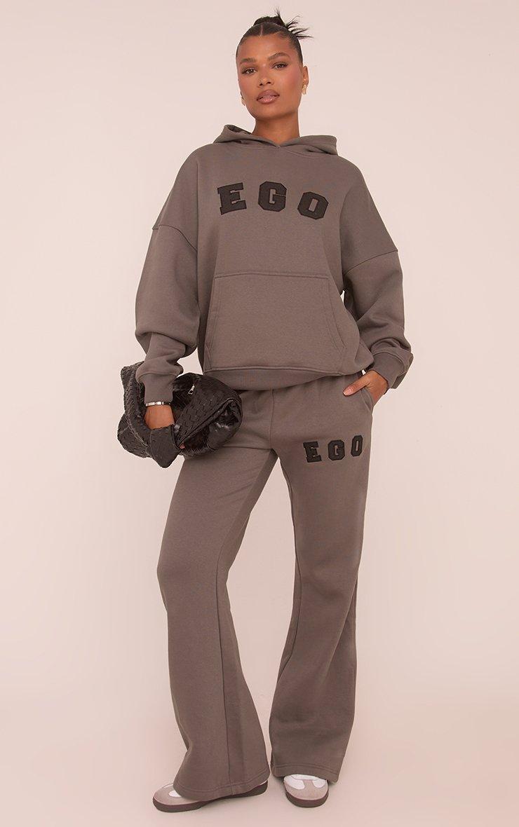 High Waist Ego Graphic Slogan Flared Leg Joggers In Grey