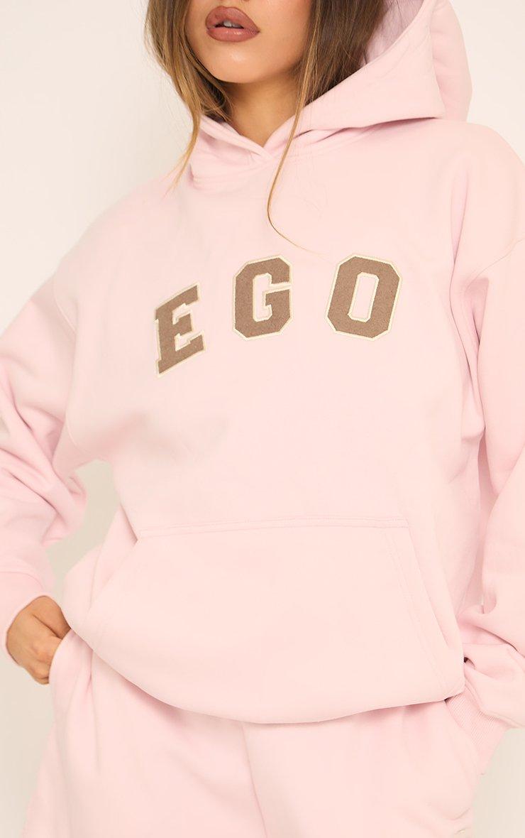 Oversized Ego Graphic Slogan Print Hoodie In Pink