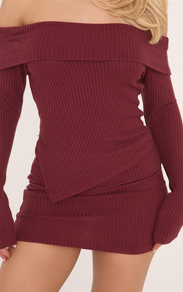 Fold Over Waistband Mini Bodycon Skirt In Burgundy Soft Ribbed