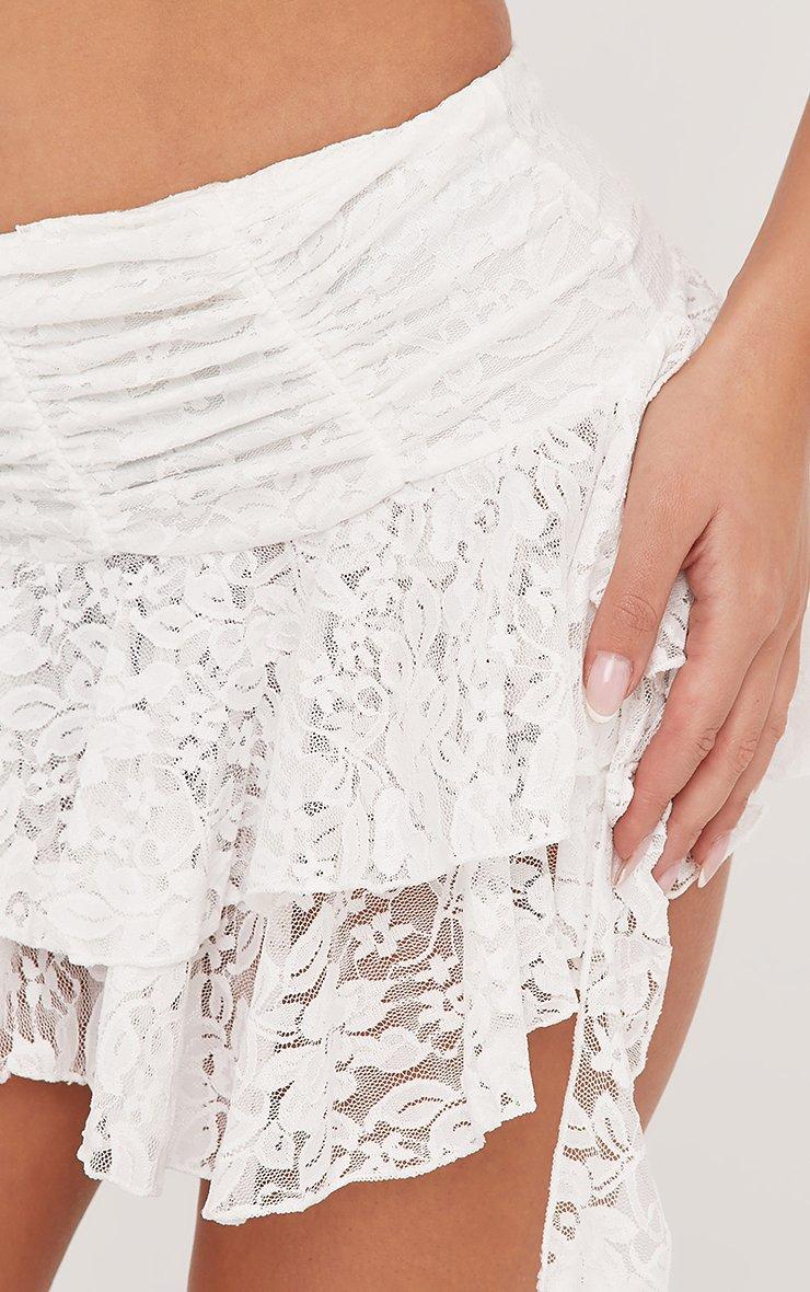 Low Rise Flippy Hem Mini Skirt In White Lace
