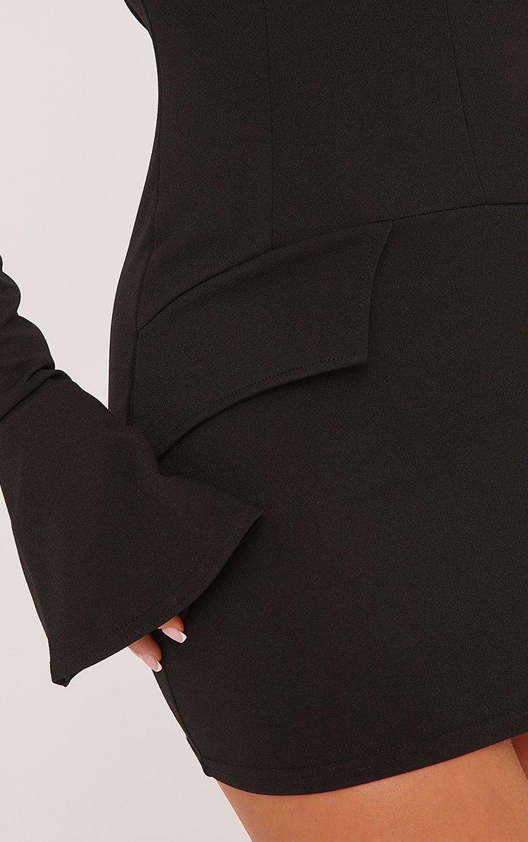 long sleeve high neck tailored mini bodycon dress in black woven