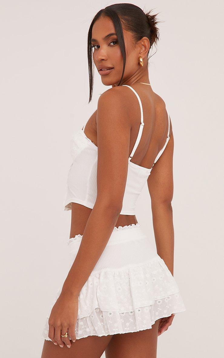 Low Rise Frilly Broderie Mini Skirt In White