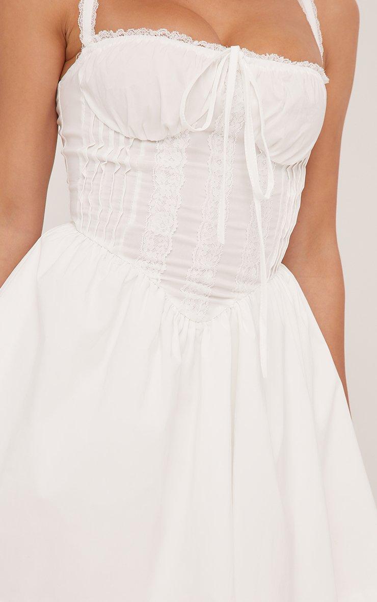 Strappy Square Neck Lace Trim Corseted Mini Skater Dress In White