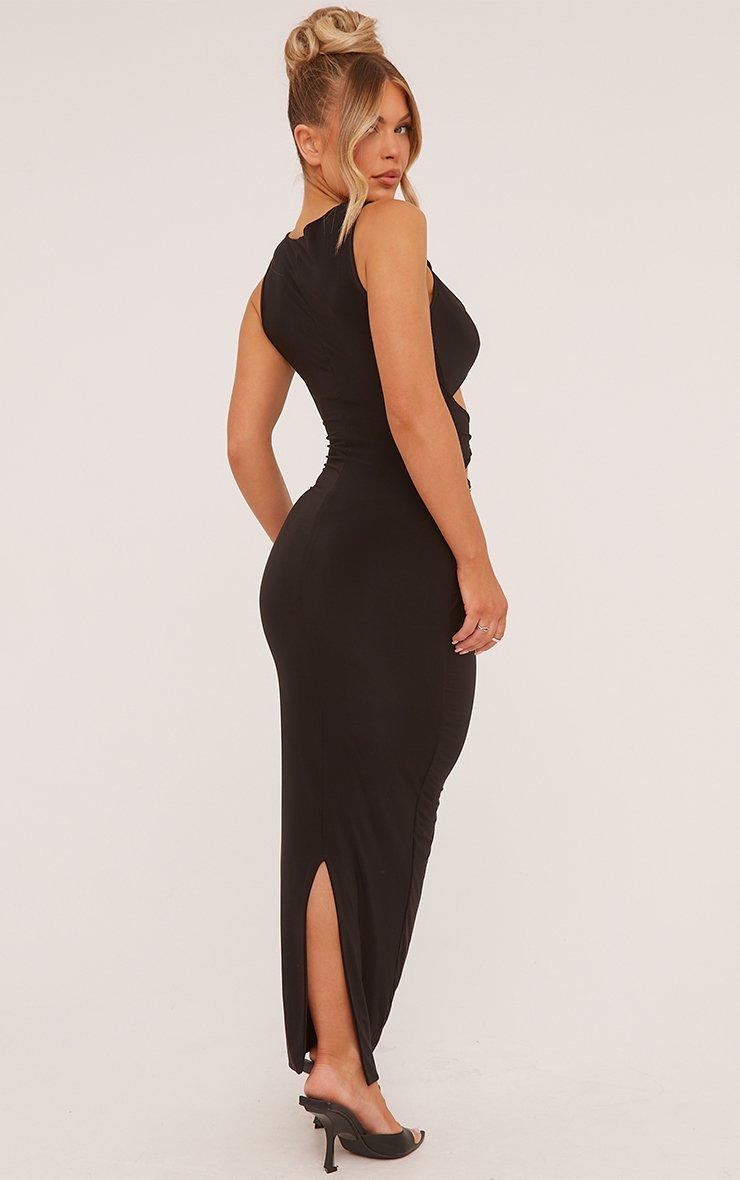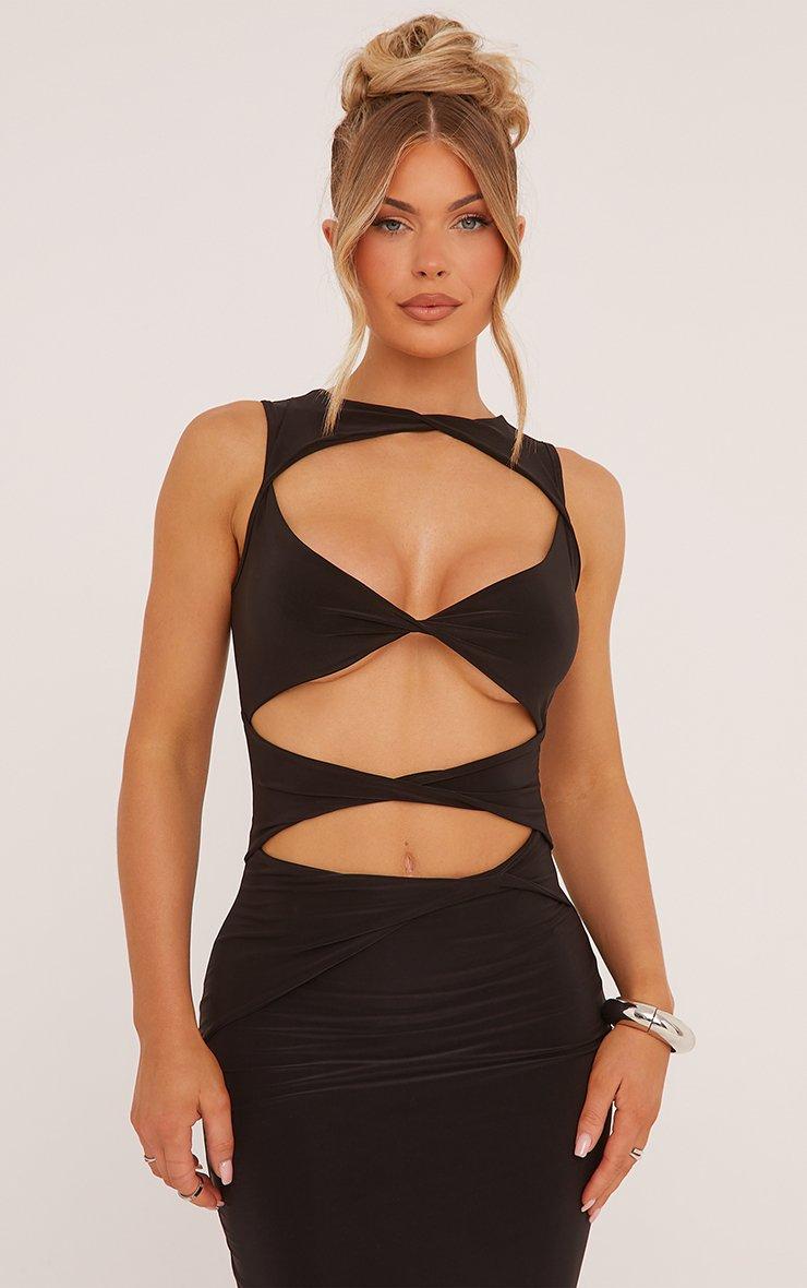 Sleeveless Cut Out Twist Front Detail Maxi Dress In Black
