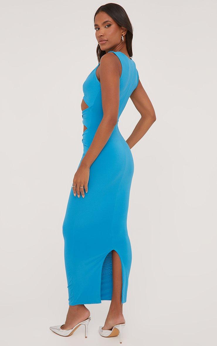 Sleeveless Cut Out Twist Front Detail Maxi Dress In Blue