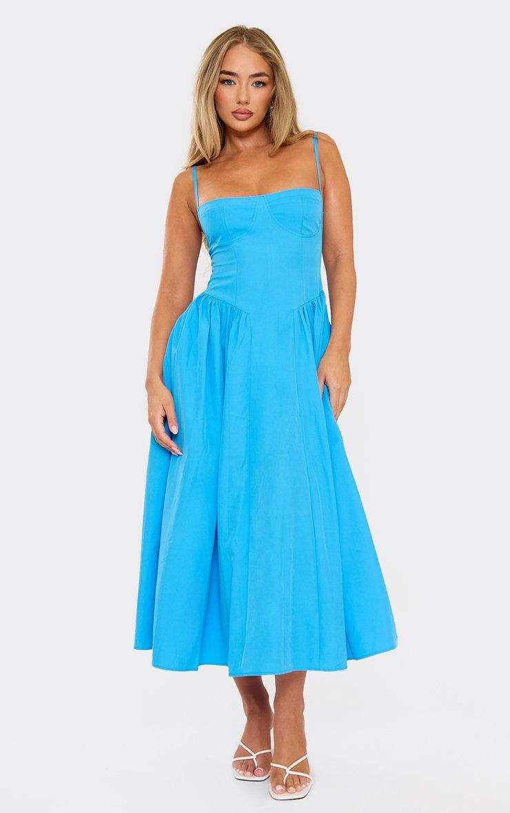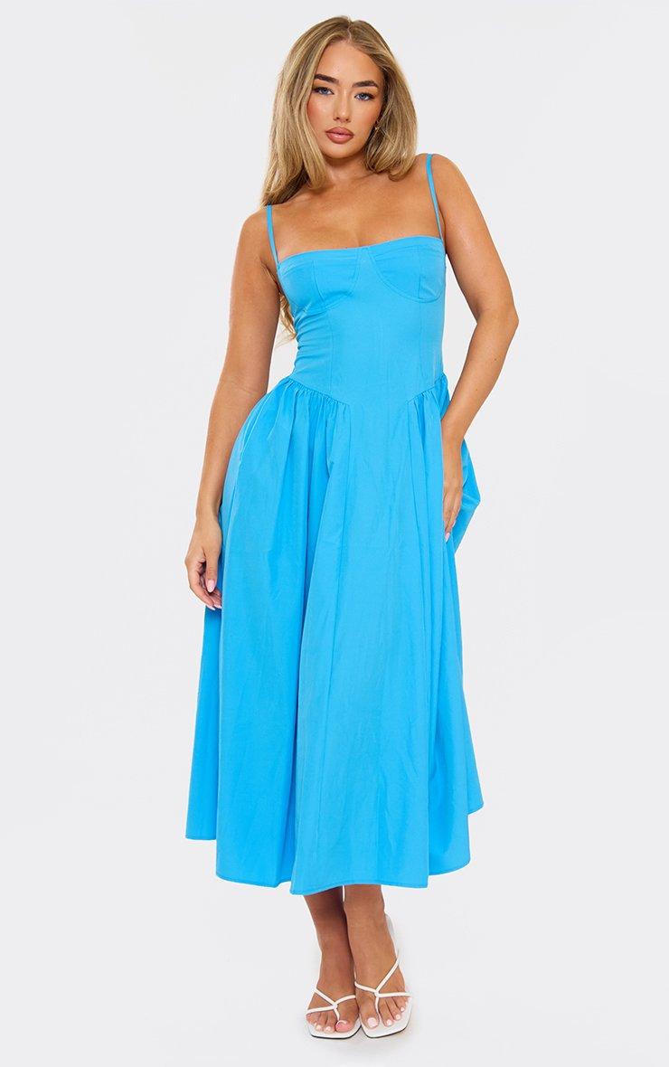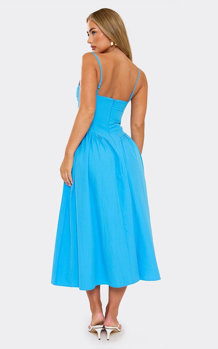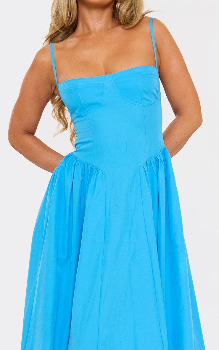 Strappy Pleated Skater Skirt Detail Midaxi Dress In Blue