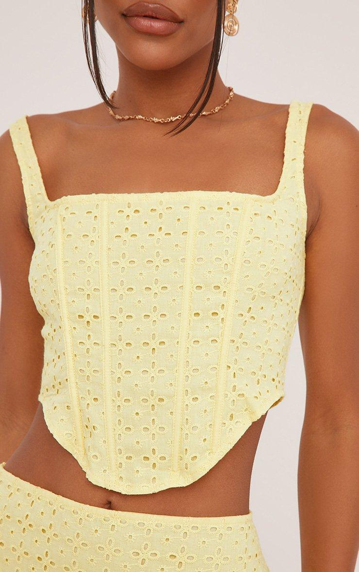 Lace Trim Peplum Hem Corset Top In Lemon