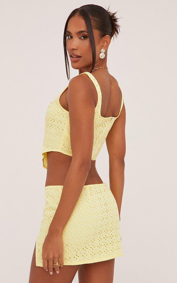 Scoop Neck Crop Top In Yellow Lace