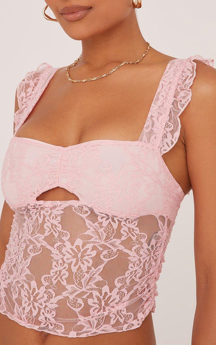 Open Back Sleeveless Crop Top In Pink Lace