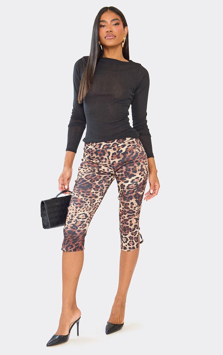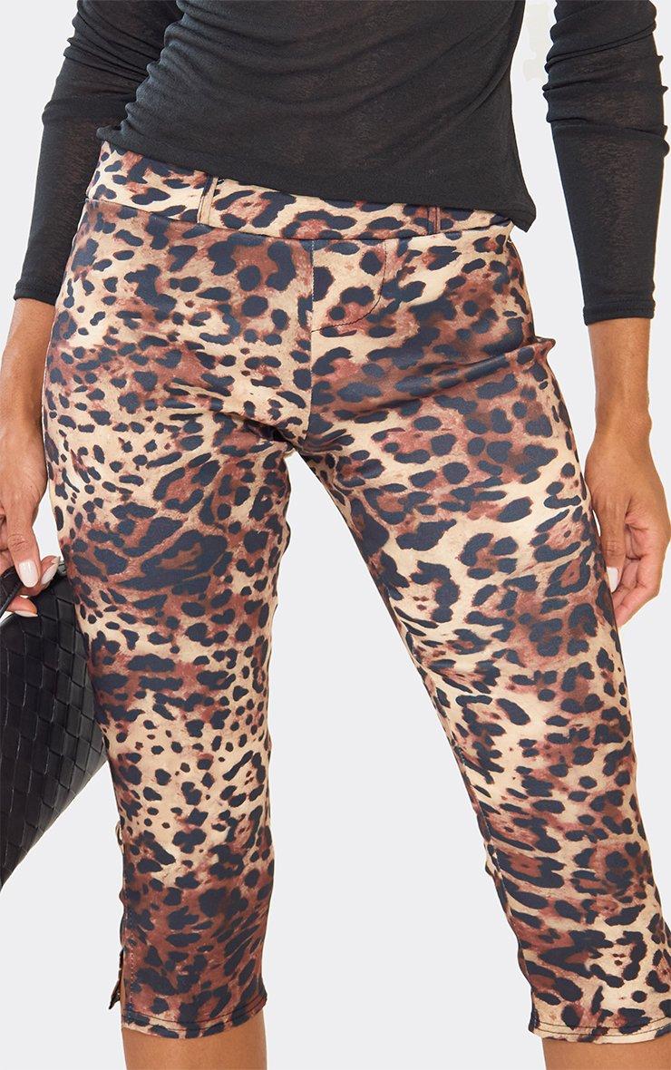 Low Rise Capri Trousers In Brown Leopard Print