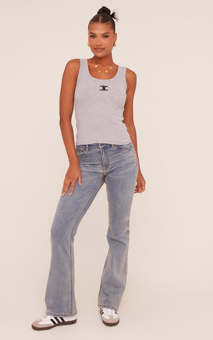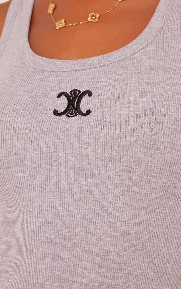 Square Neck Placket Detail Crop Top In Grey Marl