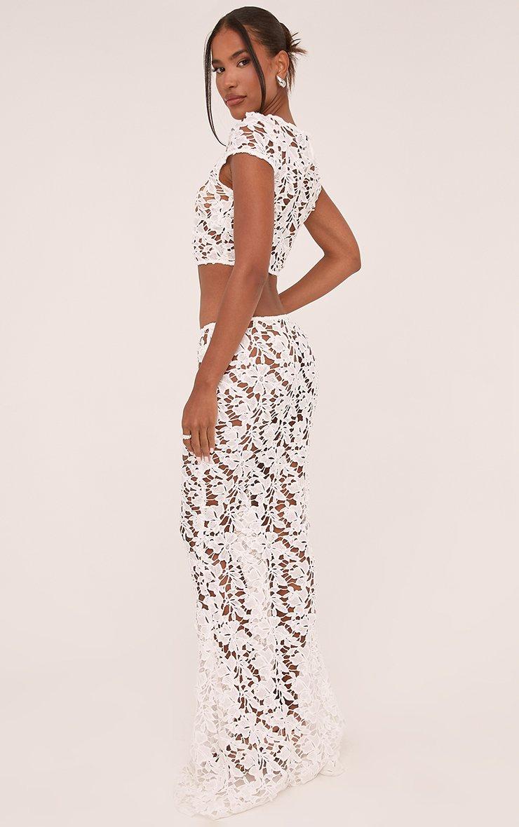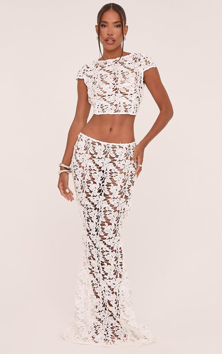 High Waist Maxi Skirt In White Textured Lace