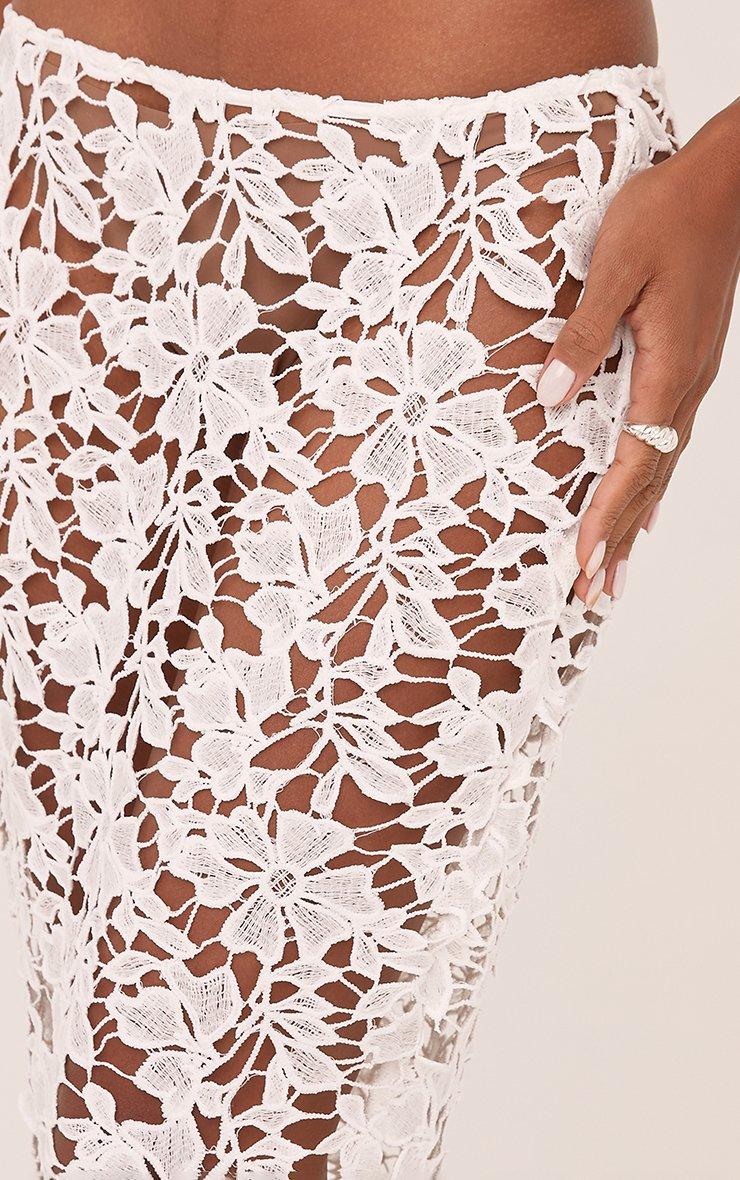 high waist maxi skirt in white textured lace