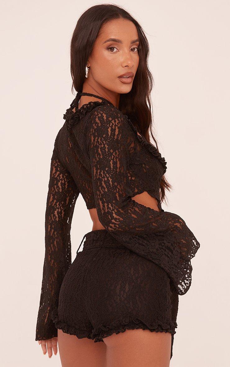 Low Rise Frilly Hot Pant Shorts In Black Lace