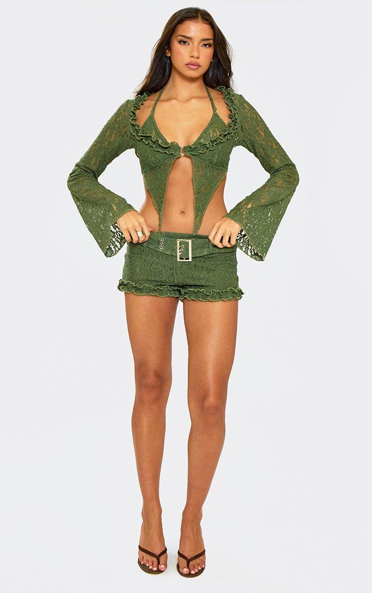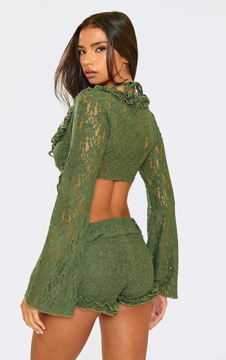 Low Rise Ruffle Detail Knicker Shorts In Green