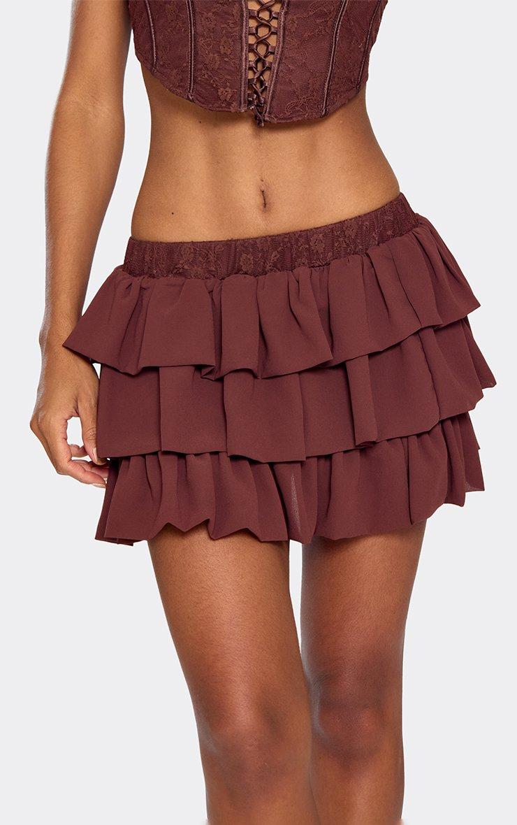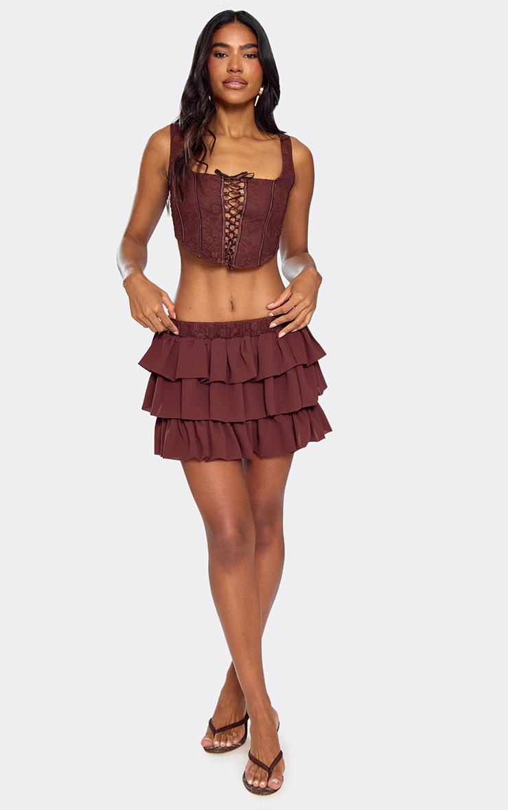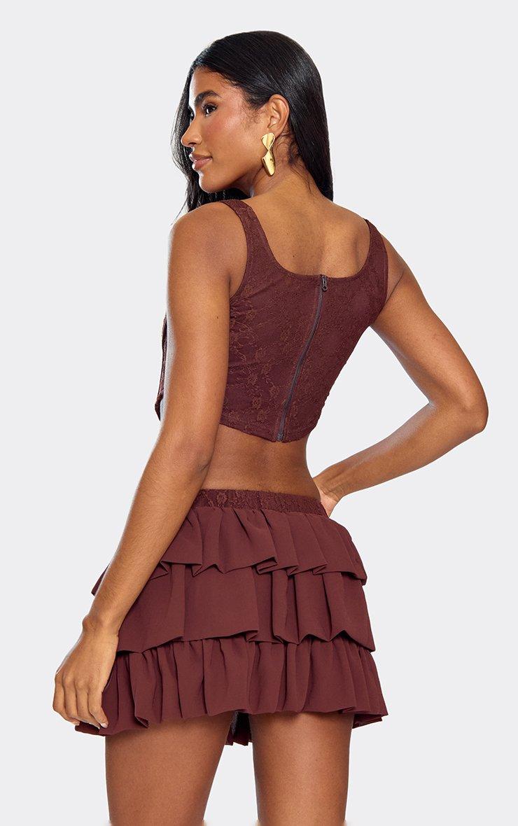 Low Waist Lace Waistband Detail Pleated Mini Skirt In Chocolate Brown