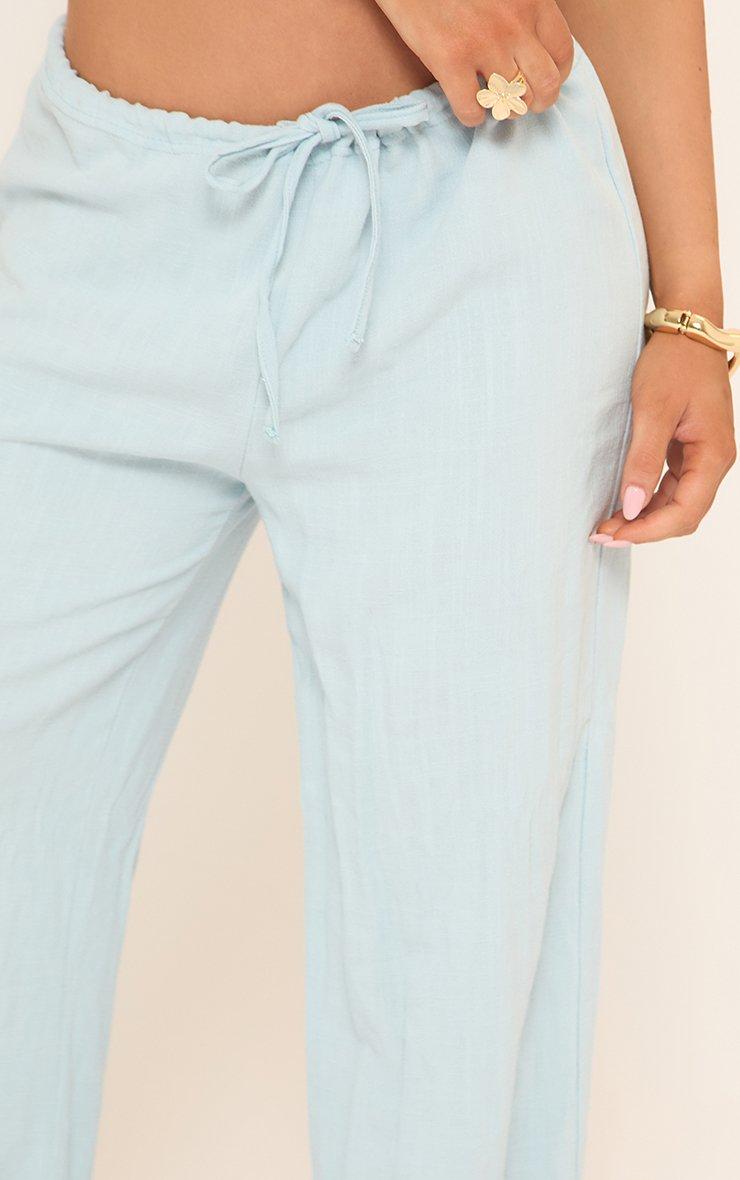 Ruched Front Tie Waist Wide Leg Trousers In Blue