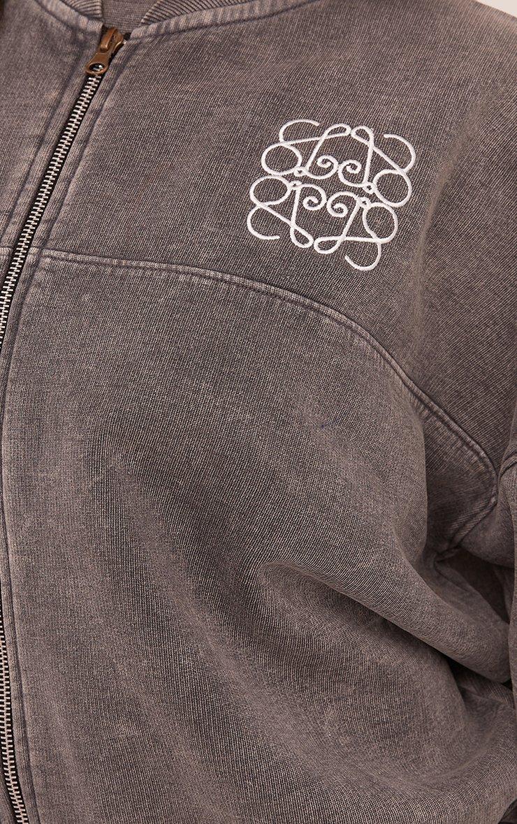 oversized zip up swirl graphic jacket in grey acid wash