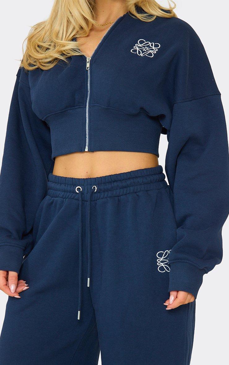 Swirl Graphic Detail Cropped Hoodie In Navy Blue