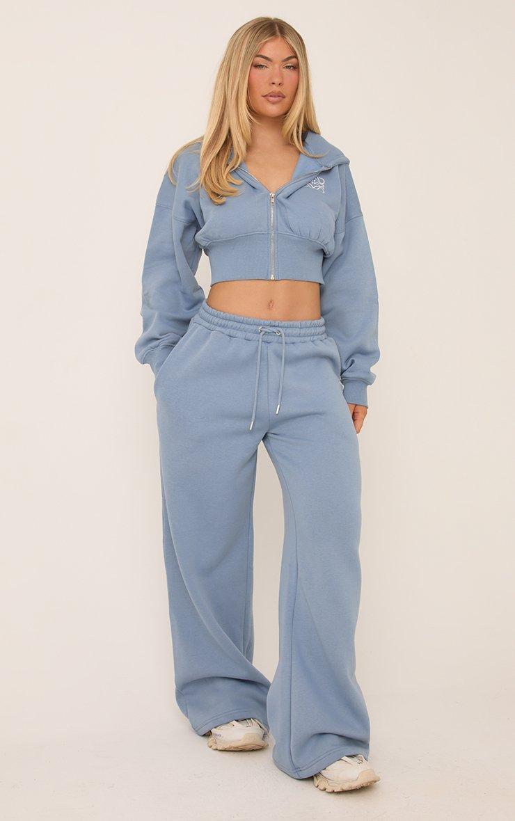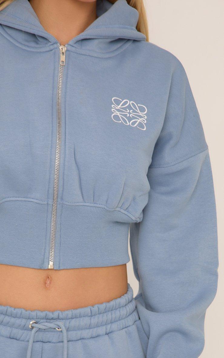 Zip Through Cropped Hoodie In Blue