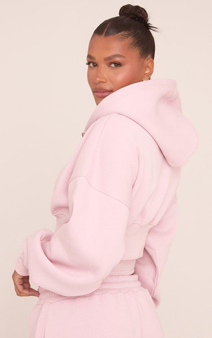 Long Balloon Sleeve Zip Up Front Cropped Hoodie In Pink