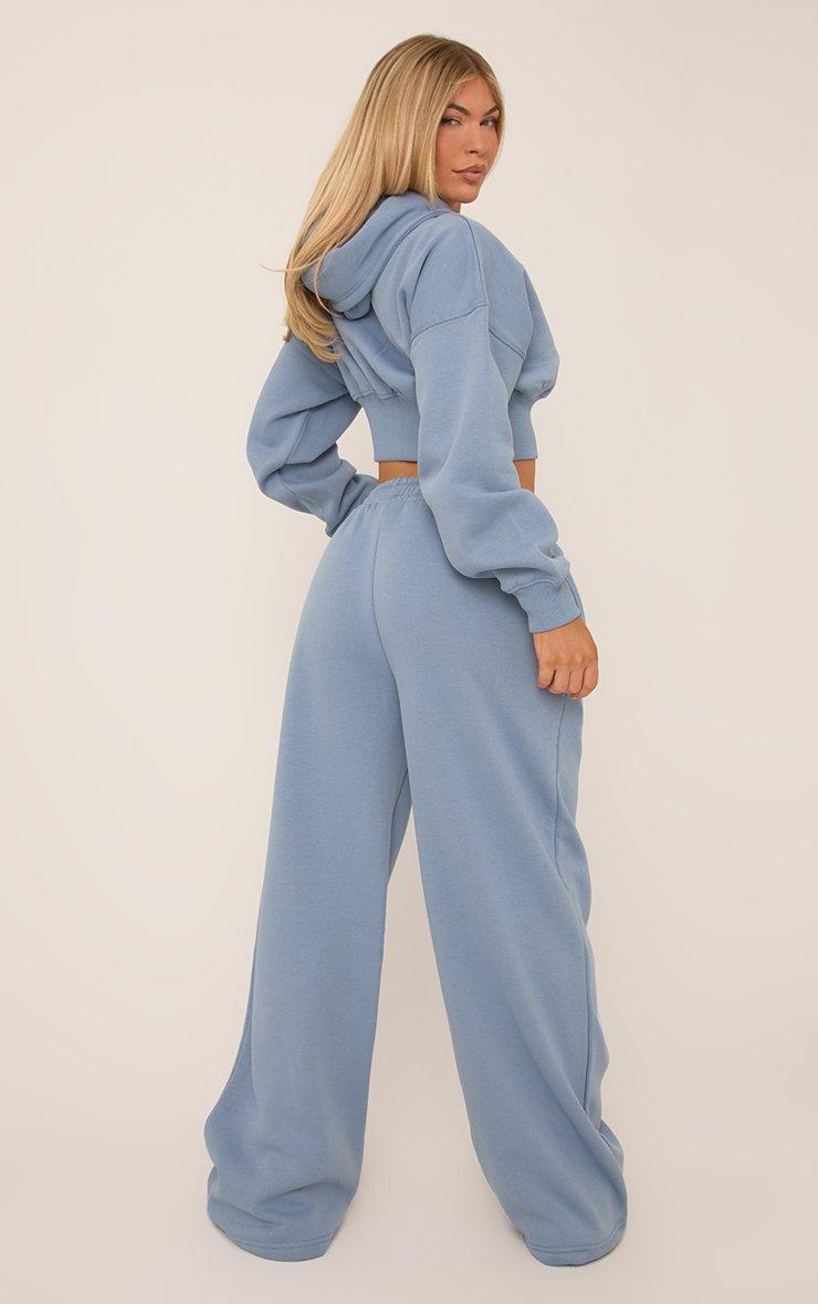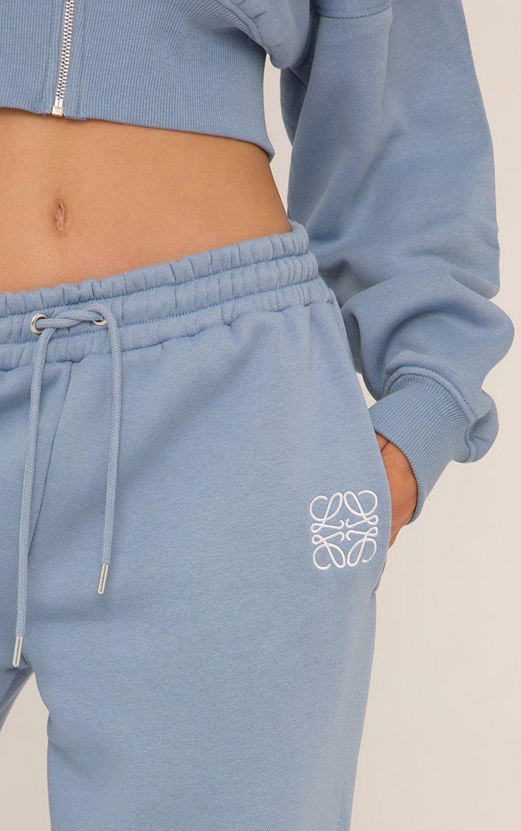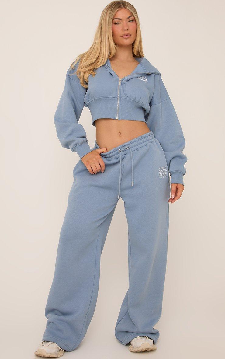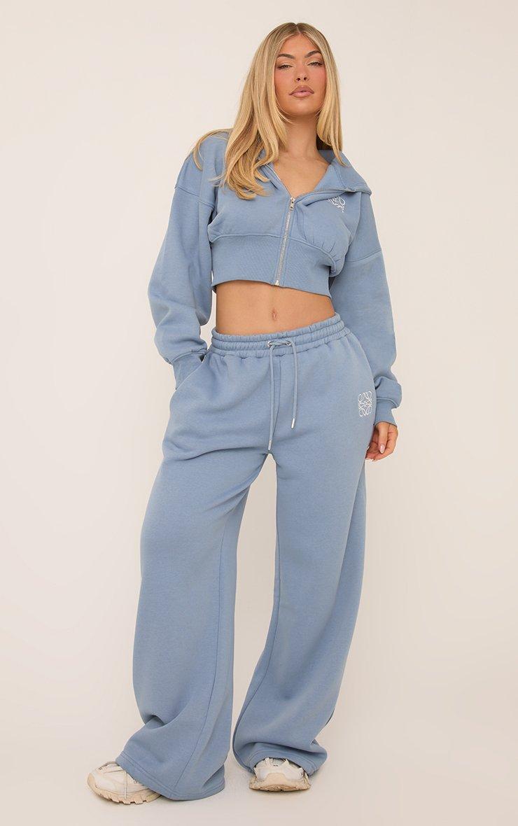 High Waist Ego Graphic Slogan Flared Leg Joggers In Dusky Blue