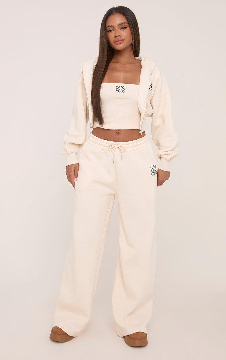 Contrast Panel Detail Wide Leg Joggers In Stone