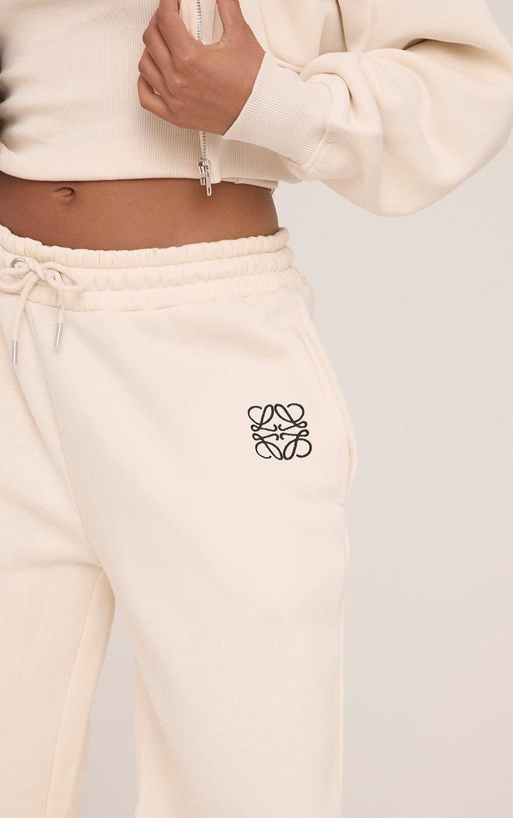 Tie Waist Swirl Graphic Detail Straight Leg Joggers In Stone