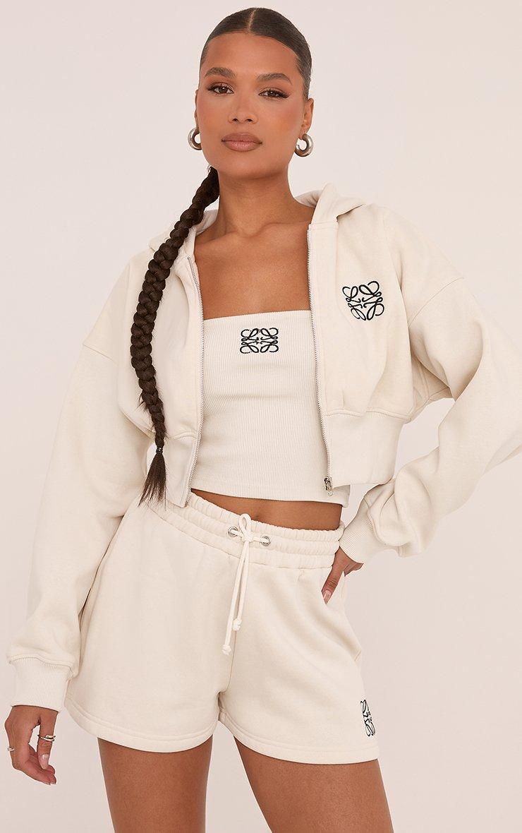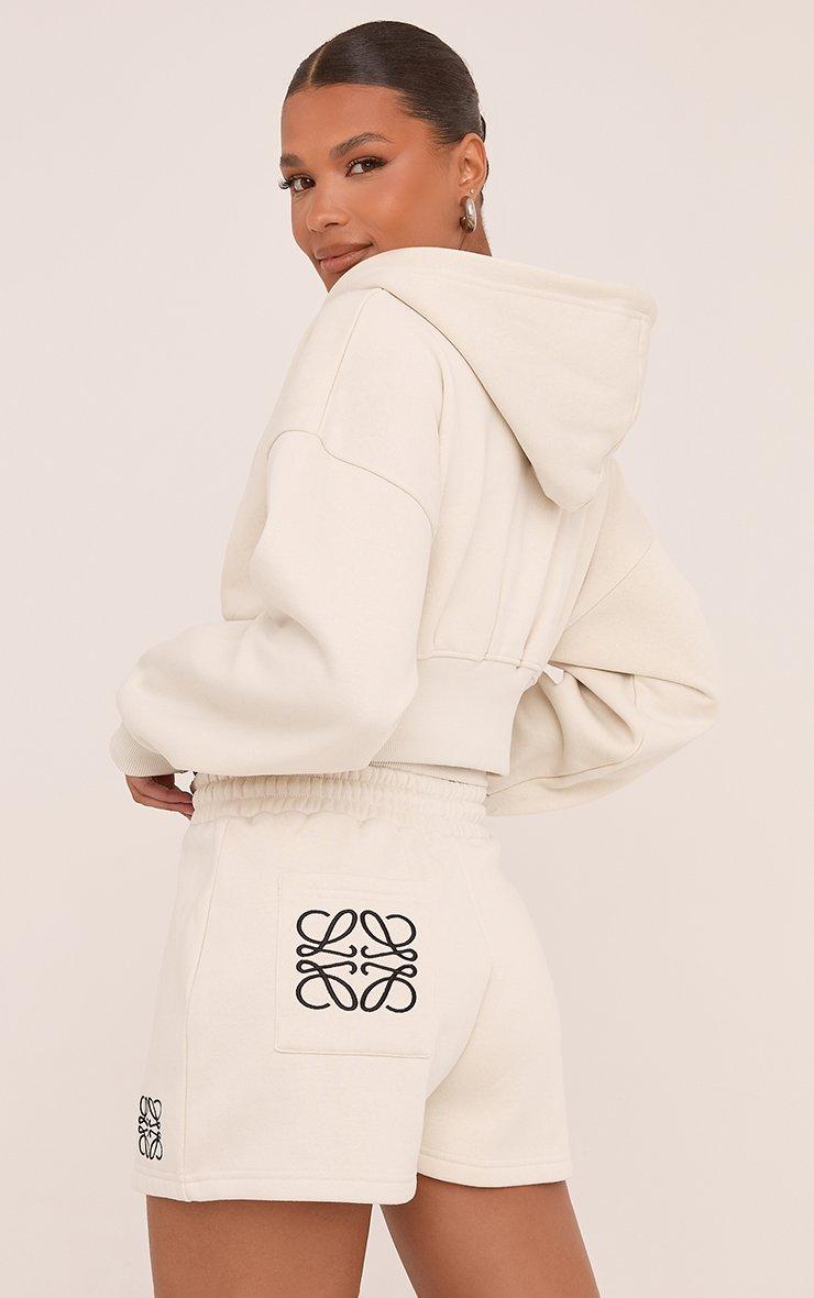 Tie Waist Swirl Graphic Detail Sweat Shorts In Stone