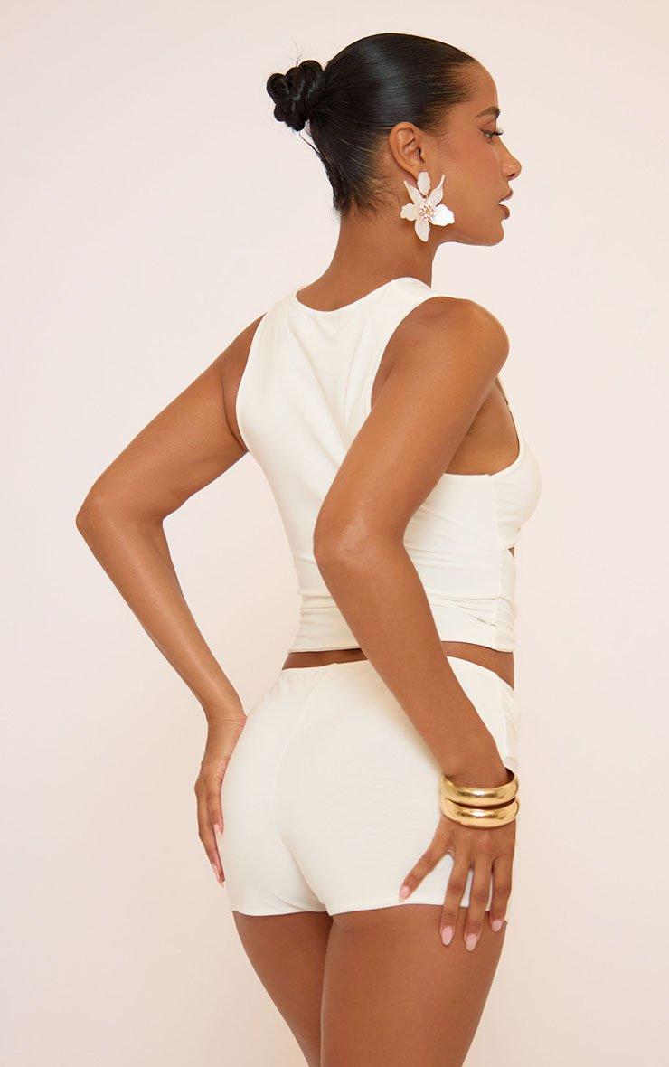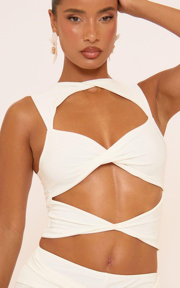 Sleeveless Cut Out Twist Front Crop Top In White Slinky