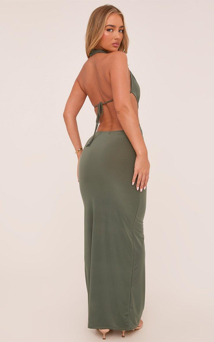 Sleeveless Cut Out Side Twist Front Maxi Dress In Green Slinky