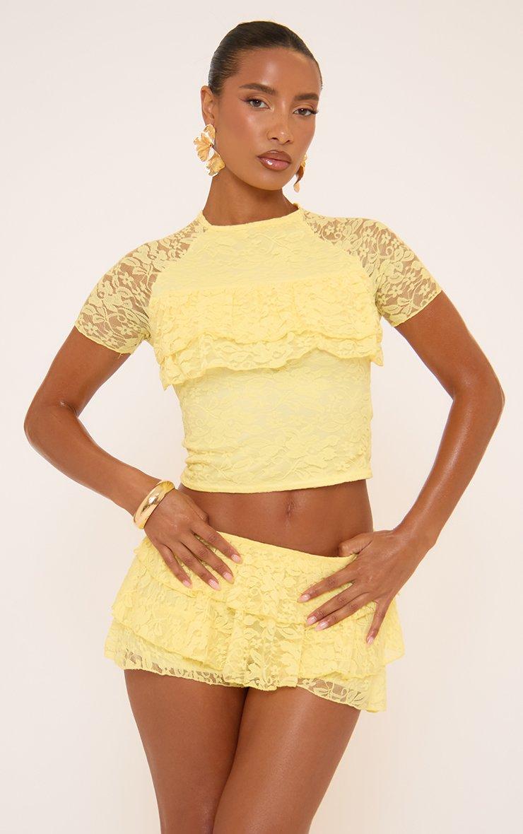 Short Sleeve Frill Bust T-Shirt In Yellow Lace