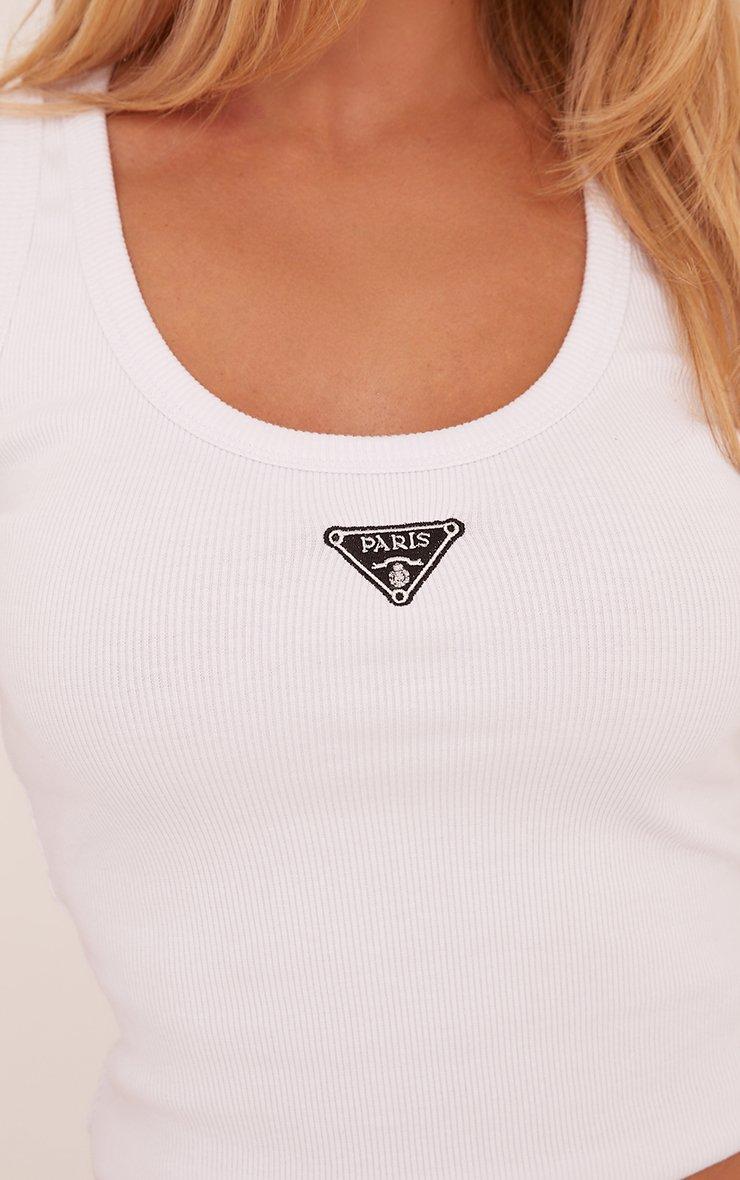 Scoop Neck Paris Badge Graphic Vest Top In White Rib