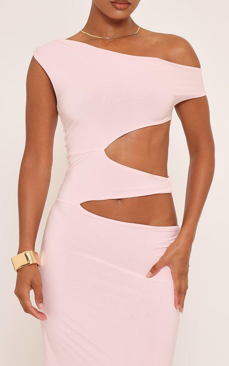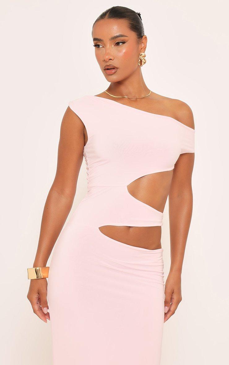 Asymmetric One Shoulder Cut Out Maxi Dress In Pink Slinky