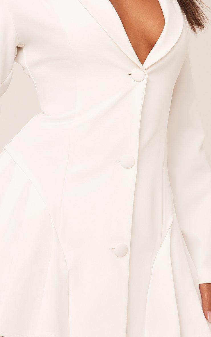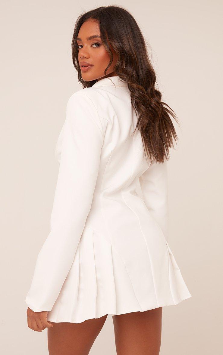 Long Sleeve Button Front Pleated Blazer Dress In White Woven
