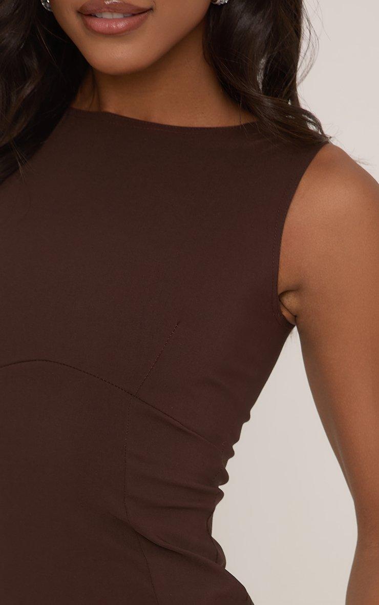 Short Boxy Sleeve Shoulder Pads Seam Detail Sweat Mini Dress In Brown