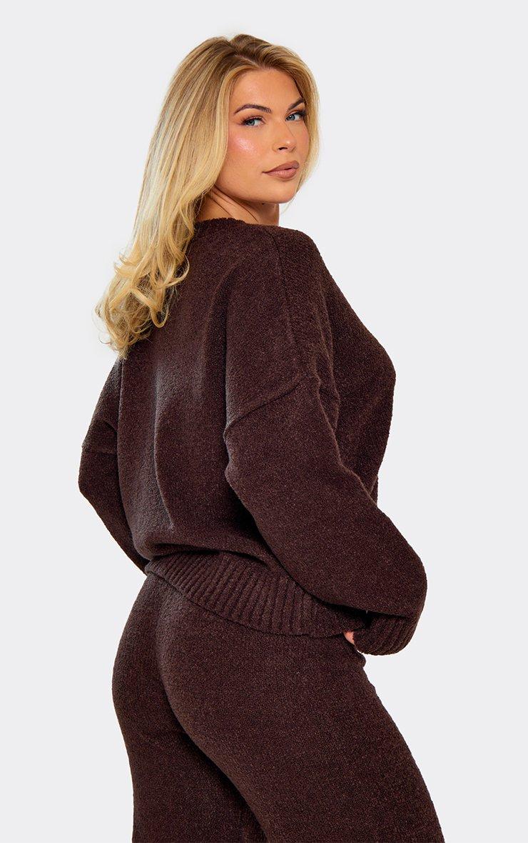 Long Sleeve Swirl Logo Detail Oversized Jumper In Chocolate Brown Knit