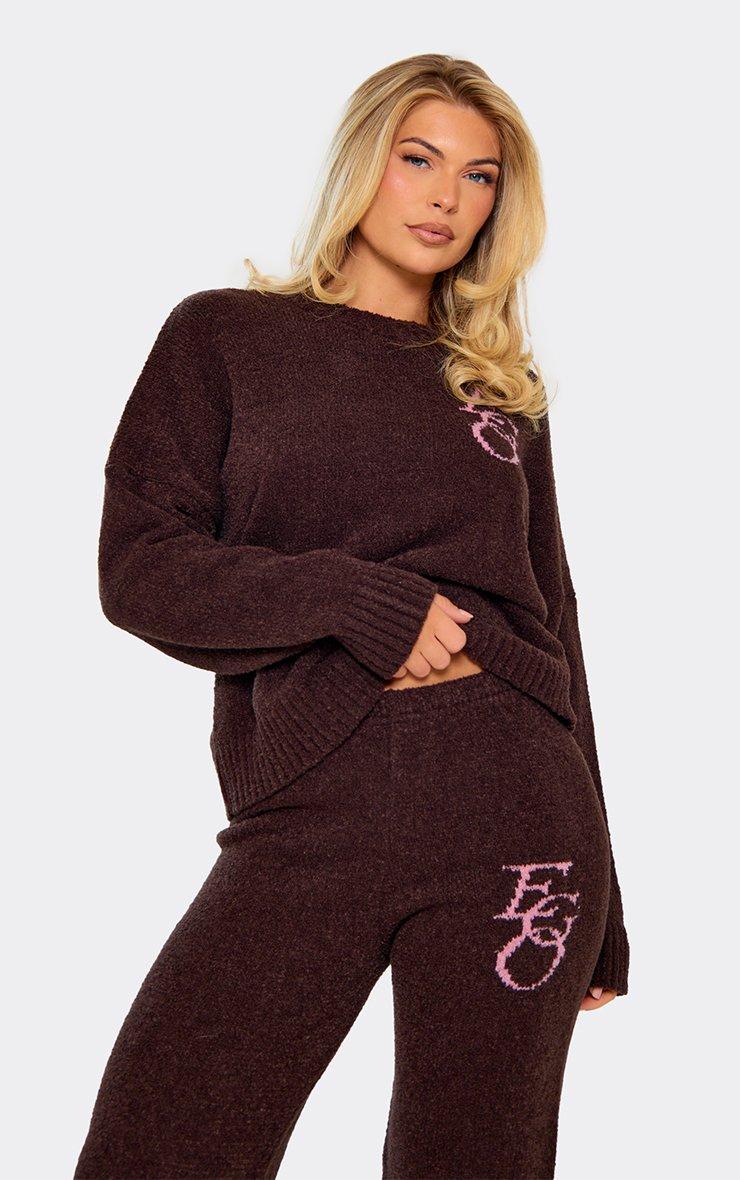 Oversized Embroidered Ego Logo Detail Jumper In Chocolate Brown Knit